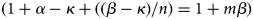 $\displaystyle {(1+\alpha -\kappa +(({\beta -\kappa })/{n})=1+m\beta )}$ in the momentum balance, all terms in the mass balance (α − σ = α + β − κ = 0), and the both sides in the stress (15b) condition at x g (1 + α + ((β − κ)/n) = 2α) we get