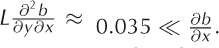 Here we present a simple analysis explaining how the balance v0(∂H/∂y) ≈ —ṁ gives rise to channels in our control case. Channels are simply the presence of significant basal slopes in the x-direction which persist for a considerable distance in the y-direction. Stated quantitatively, we distinguish channels if ∂b/∂x takes on large values while L(∂2b/∂y∂x), the rate at which those slopes change along the flow direction, remains small, for some length scale, L, corresponding to the length of the channels. Here b = − (ρI/ρo)H is the elevation of the ice base, as in Figure 2. First, we may write formally