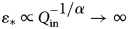 where S e is the equilibrium channel size (Appendix C). For fixed ε, we have that $\varepsilon_{\ast} \propto Q_{\rm in}^{-\textstyle{{1}/{\alpha}}} \to \infty$
