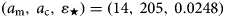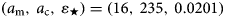 (10, 136, 0.0252), (b) $(a_{\rm m},\,a_{\rm c},\,\varepsilon _\star )=$