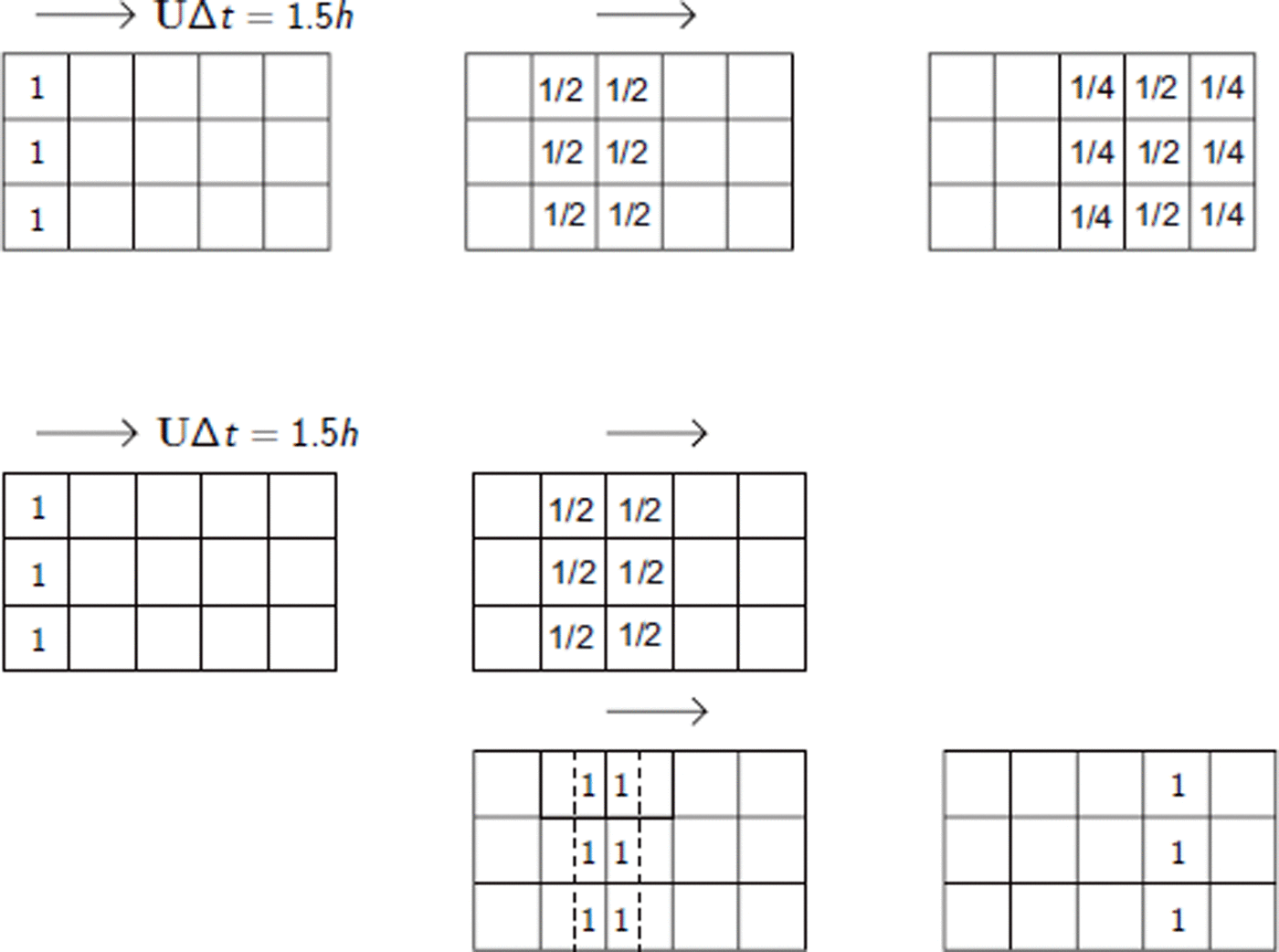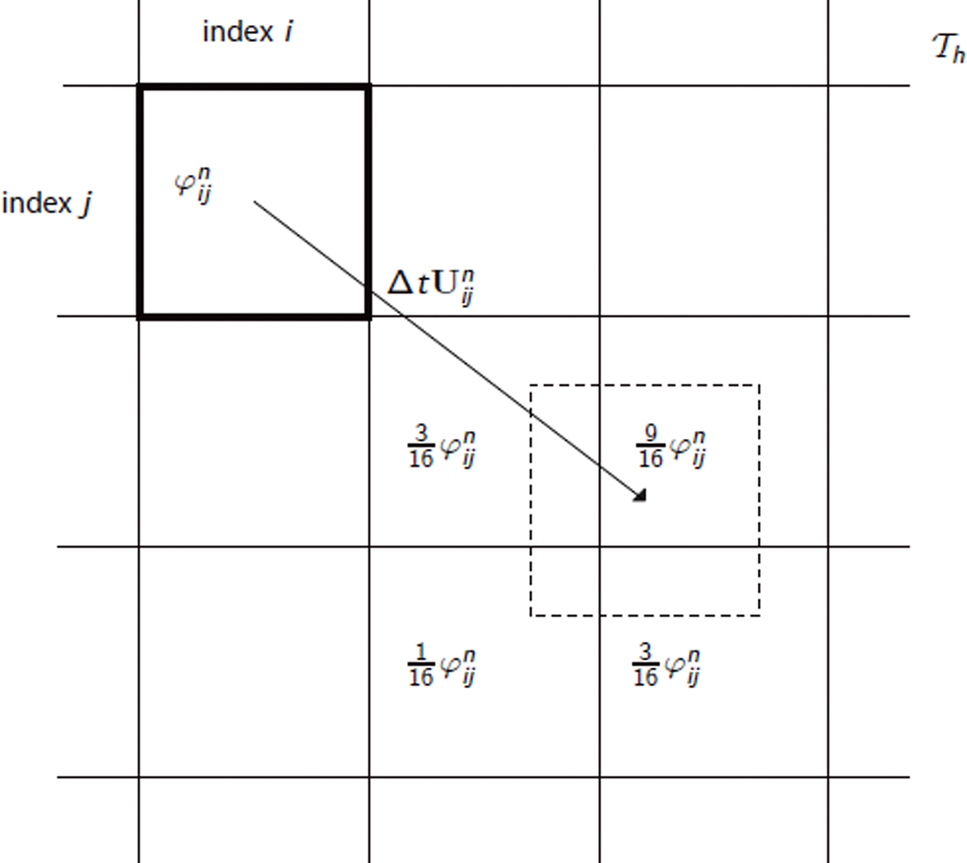 Using Equation (18), the advection step on cell number (ijk) consists in advecting