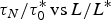 $\tau_N/\tau_0^{\ast}$ vs L/L*. The vertical line represents the limit on the abscissa: L/L* = 2.4 above which the calculations are approximately valid.