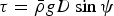$\sigma = \bar{\rho} gD\cos \psi $ gave 0.64 (p < 0.0005) and with the depth averaged slope parallel shear stress: