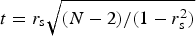 $t = r_{\rm s}\sqrt {(N-2)/(1-r_{\rm s}^2 )} $ with N − 2 as the number of degrees of freedom and use of tables of t to estimate p with significance defined as p < 0.05.