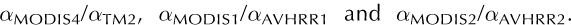 because within these bands the spectral albedo is almost constant. Therefore, we used the albedos in TM 2 and AVHRR 1 measured from the helicopter as ground truth for the satellite albedos in MODIS bands 4 and 1, respectively. The variation in  is larger than the variation in the other two ratios because the spectral albedos of snow and ice vary dramatically within AVHRR 2. Nevertheless, we used the helicopter albedos for AVHRR 2 to validate the satellite-derived albedo in MODIS 2 after dividing the satellite albedos by the mean ratio of 1.006. The associated uncertainty (0.015) should be kept in mind.