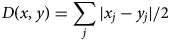 where D(x, y) is a measurement of structural differences between two economies x and y, taking the values between 0 (no differences) and 1 (no similarities); x j and y j are relative participations of sector j in economies x and y, respectively.