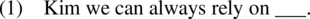 Here, there is an extra clause-initial constituent, Kim, commonly called a filler, and a gap following on in the sense that a normally obligatory constituent is missing. Here and subsequently, I use an underscore to indicate a gap. The extra clause-initial constituent and the gap are mutually dependent in that neither can appear without the other:Footnote 3