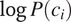 (6) $$ \log \left(\min \left\{P\left({t}_1|{c}_i\right),P\left({t}_2|{c}_i\right)\right\}\right)=-\log P\left({c}_i\right)+\left(\log {w}_S-\log {w}_A\right) $$