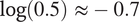 Equation (6) is the equation of a line with slope $ -1 $ and intercept $ \log {w}_S-\log {w}_A $ . This line is graphically represented in Figure 1 for arbitrarily chosen weights. $ P\left({c}_i\right) $ takes values between 0 and 1. Therefore $ \log P\left({c}_i\right) $ takes values between $ -\infty $ and 0. The probability $ \min \left\{P\left({t}_1|{c}_i\right),P\left({t}_2|{c}_i\right)\right\} $ takes values between 0 and 0.5. It cannot be larger than 0.5 because it is defined as the smaller of two probabilities summing to one. Therefore $ \log \left(\min \left\{P\left({t}_1|{c}_i\right),P\left({t}_2|{c}_i\right)\right\}\right) $ takes values between $ -\infty $ and $ \log (0.5)\hskip0.3em \approx -0.7 $ . Accordingly, the area above $ y=-0.7 $ is grayed out in Figure 1.
