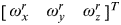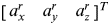 $[\matrix{ {a_x^r} & {a_y^r} & {a_z^r} \cr} ]^T $ and