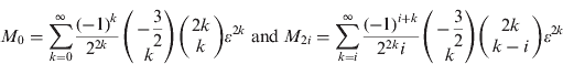 ![$$M = \left[ {\matrix{ {M_0} \cr {M_2} \cr {M_4} \cr {M_6} \cr {M_8} \cr {M_{10}} \cr}} \right] = \left[ {\matrix{ 1 & {\displaystyle{3 \over 4}} & {\displaystyle{{45} \over {64}}} & {\displaystyle{{{\rm 175}} \over {{\rm 256}}}} & {\displaystyle{{{\rm 11025}} \over {{\rm 16384}}}} & {\displaystyle{{{\rm 43659}} \over {65536}}} \cr 0 & { - \displaystyle{{\rm 3} \over 8}} & {{\rm -} \displaystyle{{{\rm 15}} \over {{\rm 32}}}} & {{\rm -} \displaystyle{{{\rm 525}} \over {{\rm 1024}}}} & {{\rm -} \displaystyle{{{\rm 2205}} \over {{\rm 4096}}}} & {{\rm -} \displaystyle{{{\rm 72765}} \over {{\rm 131072}}}} \cr 0 & 0 & {\displaystyle{{{\rm 15}} \over {256}}} & {\displaystyle{{{\rm 105}} \over {1024}}} & {\displaystyle{{{\rm 2205}} \over {{\rm 16384}}}} & {\displaystyle{{{\rm 10395}} \over {{\rm 65536}}}} \cr 0 & 0 & 0 & {{\rm -} \displaystyle{{{\rm 35}} \over {{\rm 3072}}}} & {{\rm -} \displaystyle{{{\rm 105}} \over {{\rm 4096}}}} & {{\rm -} \displaystyle{{{\rm 10395}} \over {{\rm 262144}}}} \cr 0 & 0 & 0 & 0 & {\displaystyle{{{\rm 315}} \over {{\rm 131072}}}} & {\displaystyle{{{\rm 3465}} \over {{\rm 524288}}}} \cr 0 & 0 & 0 & 0 & 0 & {{\rm -} \displaystyle{{{\rm 693}} \over {{\rm 1310720}}}} \cr}} \right]\left[ {\matrix{ 1 \cr {e^2} \cr {e^4} \cr {e^6} \cr {e^8} \cr {e^{10}} \cr}} \right]$$](https://static.cambridge.org/binary/version/id/urn:cambridge.org:id:binary:20151022025822722-0228:S0373463312000148_eqn13.gif?pub-status=live)