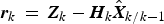 $${\bi r}_k = {\bi Z}_k - {\bi H}_k \phi _{k/k - 1} \left[ \matrix{{\hat{\bi X}}_{g\left( {k - 1} \right)} \hfill \cr {\hat{\bi X}}_{L\left( {k - 1} \right)} \hfill} \right]$$