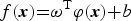 $${\,f}{\rm (}{\bi x}{\rm )}{ =} {\bi \omega} ^{\rm T} \varphi {\rm (}{\bi x}{\rm )}{ + b}$$
