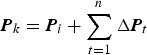 $${\bi P}_k = {\bi P}_i + \mathop \sum_{t = 1}^n \Delta {\bi P}_t $$