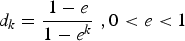 $$d_k = \displaystyle{{1 - e} \over {1 - e^k}} \;, 0 \lt e \lt 1$$