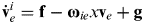 ${\bf \dot v}_e^i = {\bf f} - {\bf \omega} _{ie} x{\bf v}_e + {\bf g}$ into Equation (1), we have