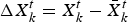 ${\rm \;} \Delta X_k^t = X_k^t - \bar X_k^t $, and the process noise error as the difference between the real noise and the ideal Gaussian white noise