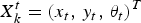 ${\rm \;} X_k^t = {\left( {{x_t},\,{y_t},\,{\theta _t}} \right)^T}$ and the input
