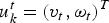 ${\rm \;} u_k^t = {\left( {{v_t},{\omega _t}} \right)^T}\!$, the state propagation equation is: