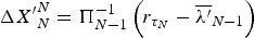 $\Delta X{^ \prime}_N^N = {\it \Pi} _{N - 1}^{ - 1} \left( {{r_{{\tau _N}}} - {{\overline {\lambda {^ \prime}}} _{N - 1}}} \right)$;