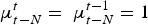 $\mu _{t - N}^t = \; \mu _{t - N}^{t - 1} = 1$, so