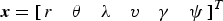 ${\bi x} = \left[ {\matrix{ r & \theta & \lambda & v & \gamma & \psi \cr}} \right]^T$