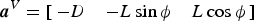 ${\bi a}^V = \left[ {\matrix{ { - D} & { - L\sin \phi} & {L\cos \phi} \cr}} \right]$