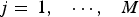 $j = \matrix{ {1,} & { \cdots,} & M \cr} $