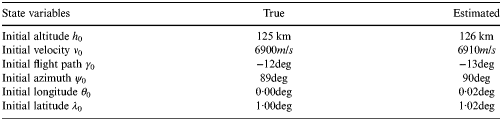 Table 3. Initial entry conditions (true state) and initial estimator conditions (estimated state).