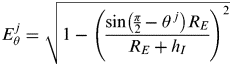 $E_\theta ^{\,j} = \sqrt {1 - \left( {\displaystyle{{\sin \left( {{\textstyle{\pi \over 2}} - \theta ^{\,\,j}} \right)R_E} \over {R_E + h_I}}} \right)^2} $ is the elevation mapping function (Liu and Xie, Reference Liu and Xie2001), θ is the satellite elevation angle, R E is the average radius of the Earth and h I is the height of the main electron concentration in the ionosphere. Mapping the STEC to the vertical, each measurement from high elevation satellites should yield approximately the same TEC values assigned to the location above the site of the receiver. So we assume a single vertical total electron content (VTEC). An equation set can be obtained for each epoch: