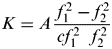 $K = A\displaystyle{{\,f_1^2 - f_2^2} \over {cf_1^2\ \ f_2^2}} $,