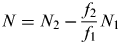$N = N_2 - \displaystyle{{\,f_2} \over {\,f_1}} N_1 $.