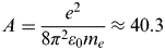 $A = \displaystyle{{e^2} \over {8\pi ^2 \varepsilon _0 m_e}} \approx 40.3$ and