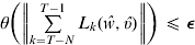 $\theta \left(\left\Vert\sum\limits_{k = T - N}^{T - 1} {L_k (\hat w,\hat \upsilon )}\right\Vert\right) \leqslant {\epsilon} $ is guaranteed.