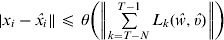 $\vert x_i - \hat x_i \Vert \leqslant \theta \left(\left\Vert\sum\limits_{k = T - N}^{T - 1} {L_k (\hat w,\hat \upsilon )} \right\Vert\right)$.