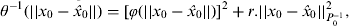 $\theta ^{ - 1} (||x_0 - \hat x_0 ||) = [\varphi (||x_0 - \hat x_0 ||)]^2+ r.||x_0 - \hat x_0 ||_{P_0^{ - 1}} ^2,$