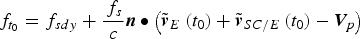 $$T_0 = \displaystyle{{\phi _0} \over {\,f_s}} = \left[ {1 + \displaystyle{1 \over c}{\bi n} \bullet \left( {{\bi v}_{SC/E} \left( {t_0} \right) + {\bi v}_E \left( {t_0} \right) - {\bi V}_p} \right)} \right]^{ - 1} $$4. EXTENDED SIGNAL MODEL AND ESTIMATION METHOD