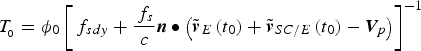 $$T_{_0} = \phi _0 \left[ {\,f_{sdy} + \displaystyle{{\,f_s} \over c}{\bi n} \bullet \left( {{\tilde {\bi v}}_E \left( {t_0} \right) + {\tilde {\bi v}}_{SC/E} \left( {t_0} \right) - {\bi V}_p} \right)} \right]^{ - 1} $$5. SIMULATIONS