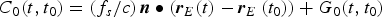 $C_0 (t,t_0 ) = \left( {f_s /c} \right){\bi n} \bullet \left( {{\bi r}_E (t) - {\bi r}_E \left( {t_0} \right)} \right) + G_0 (t,t_0 )$ can be calculated in advance.