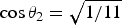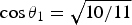 $\cos \theta _1 = \sqrt {{{10} / {11}}} $,