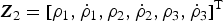 ${\bi Z}_{\rm 2} = [\rho _1, \dot \rho _1, \rho _2, \dot \rho _2, \rho _3, \dot \rho _3 ]^{\rm T} $ is the measurement vector of the RNS,