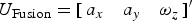 ${U}_{{\rm Fusion}} = \left[ {\matrix{ {a_x} & {a_y \quad \omega _z} \cr}} \right]^{\prime} $ is the input vector.
