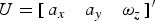 ${U} = \left[ {\matrix{ {a_x} & {a_y \quad \omega _z} \cr}} \right]^{\prime} $ is the input vector.