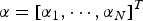 ${\alpha} = \left[ {\alpha _1, \cdots, \alpha _N} \right]^T $.