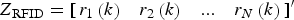 ${Z}_{{\rm RFID}} = \left[ {\matrix{ {r_1 \left( k \right)} & {r_2 \left( k \right)} & {...} & {r_N \left( k \right)} \cr}} \right]^{\prime} $ is the observation vector and h RFID is the corresponding observation function and can be described by: