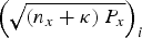 $\left( {\sqrt {\left( {n_x + \kappa} \right){P}_x}} \right)_i $ represents the i-th row of the matrix square root. α determines the spread of the sigma points around