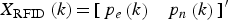 ${X}_{{\rm RFID}} \left( k \right){\rm =} \left[ {\matrix{ {p_e \left( k \right)} & {p_n \left( k \right)} \cr}} \right]^{\prime} $ is the state vector; the state transition matrix