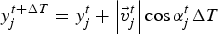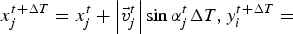 $x_j^{t + \Delta T} = x_j^t + \left\vert {\vec v_j^t} \right\vert \sin \alpha _j^t \Delta T, y_i^{t + \Delta T}= $