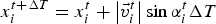 $x_i^{t + \Delta T} = x_i^t + \left\vert {\vec v_i^t} \right\vert \sin \alpha _i^t \Delta T$,
