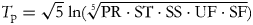 where $T_{\rm p} = \sqrt 5 \;{\rm ln}( {\root 5 \of {{\rm PR}\cdot {\rm ST}\cdot {\rm SS}\cdot {\rm UF}\cdot {\rm SF}} } ) \;$